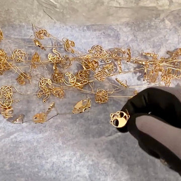Les différents éléments du bijou sont soigneusement assemblés à la main, donnant vie à la création finale.