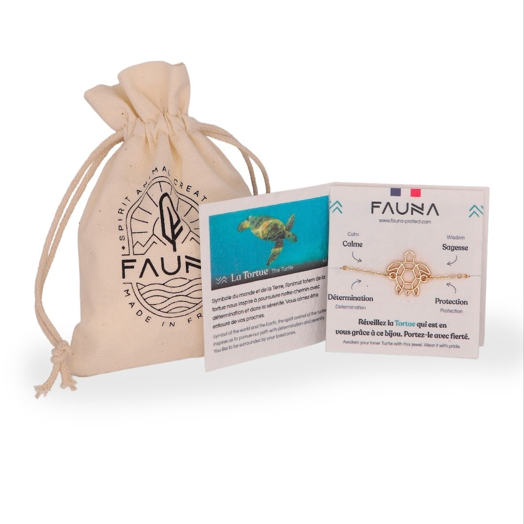 • J'ai acheté le bracelet tortue pour offrir, il est tout juste adorable J'aais déjà acheté plusieurs bracelets Fauna protect et je n'ai jamais été déçue.C'est une marque que je recommande.Je me prendrai surement plus tard le bracelet et le collier éléphant que je trouve trop beau.
