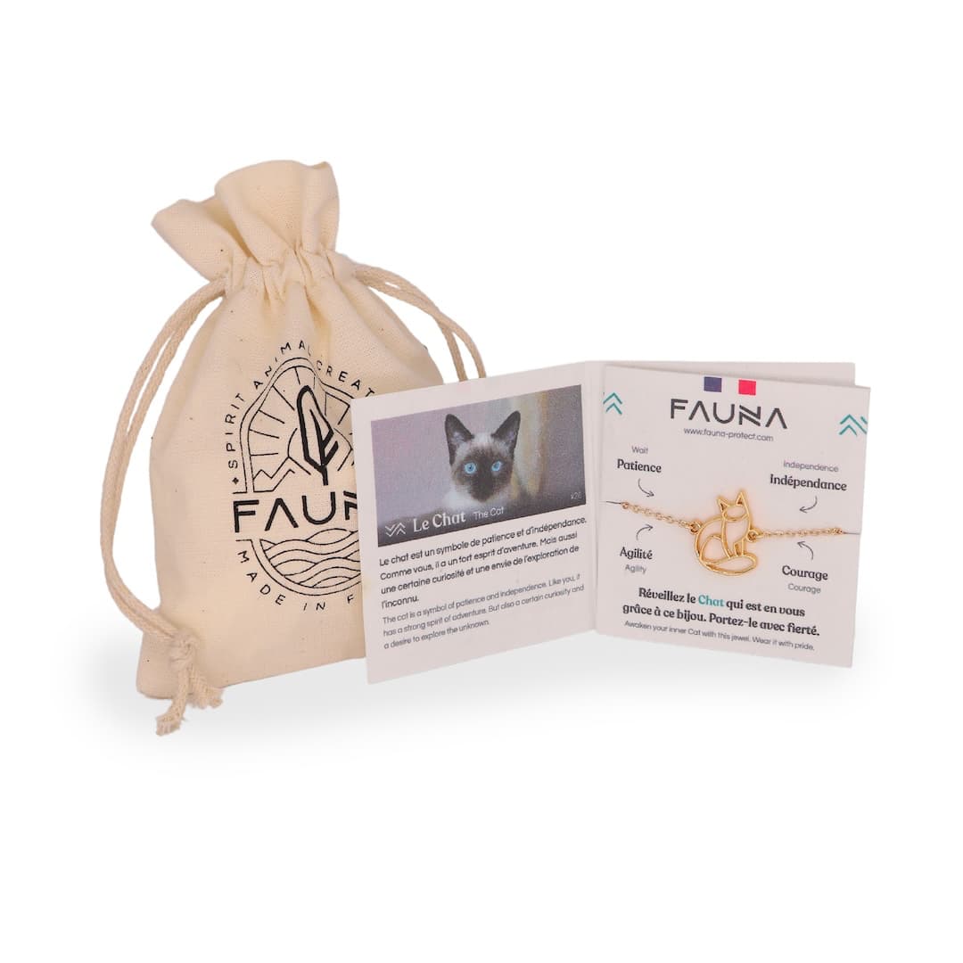 Nous avons commandé le bracelet chat (version or) et le tigre (version argentée). L'envoi est rapide et le packaging très soigné. Nous sommes ravis des deux bracelets qui allient élégance, discrétion et symbolique. L'engagement de Fauna a également pesé lourd dans la balance. Que cela soit pour les animaux comme la terre qu'ils peuplent.
