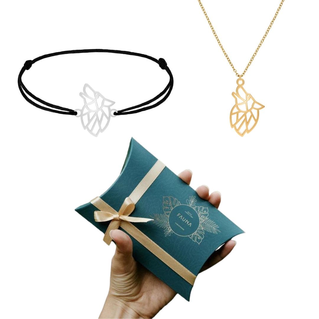 Nous avons offert un coffret "loup"or pour les 60 ans de ma tante. Elle qui porte une attention particulière pour les animaux a été très touchée par le concept. Le collier et le bracelet sont magnifiques, l'emballage cadeau original. Bravo à vous