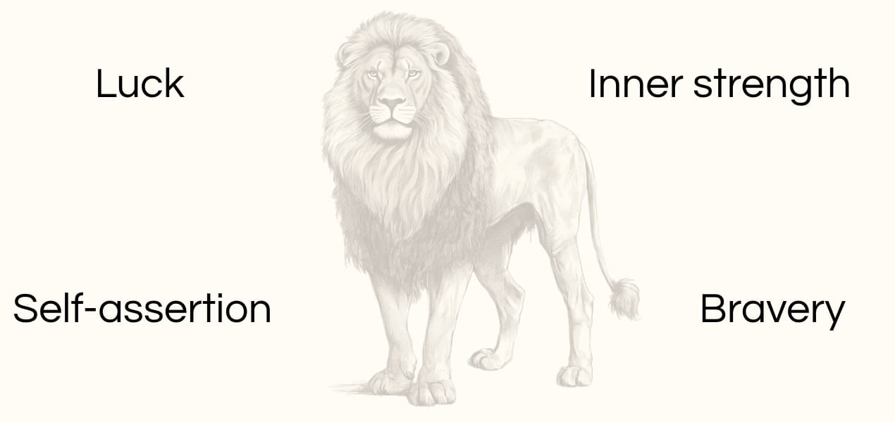 The lion's bright golden mane made it "a natural solar symbol". The lion's energy also covers our spirit with lunar power and great self-confidence. The lion has a big heart capable of withstanding strong emotions. It gives a unique personal power to get through life. Lions are leaders, with strong negotiating skills. If you face difficulties head-on, are cunning, assertive and have the courage to survive rivalry, the lion is for you.