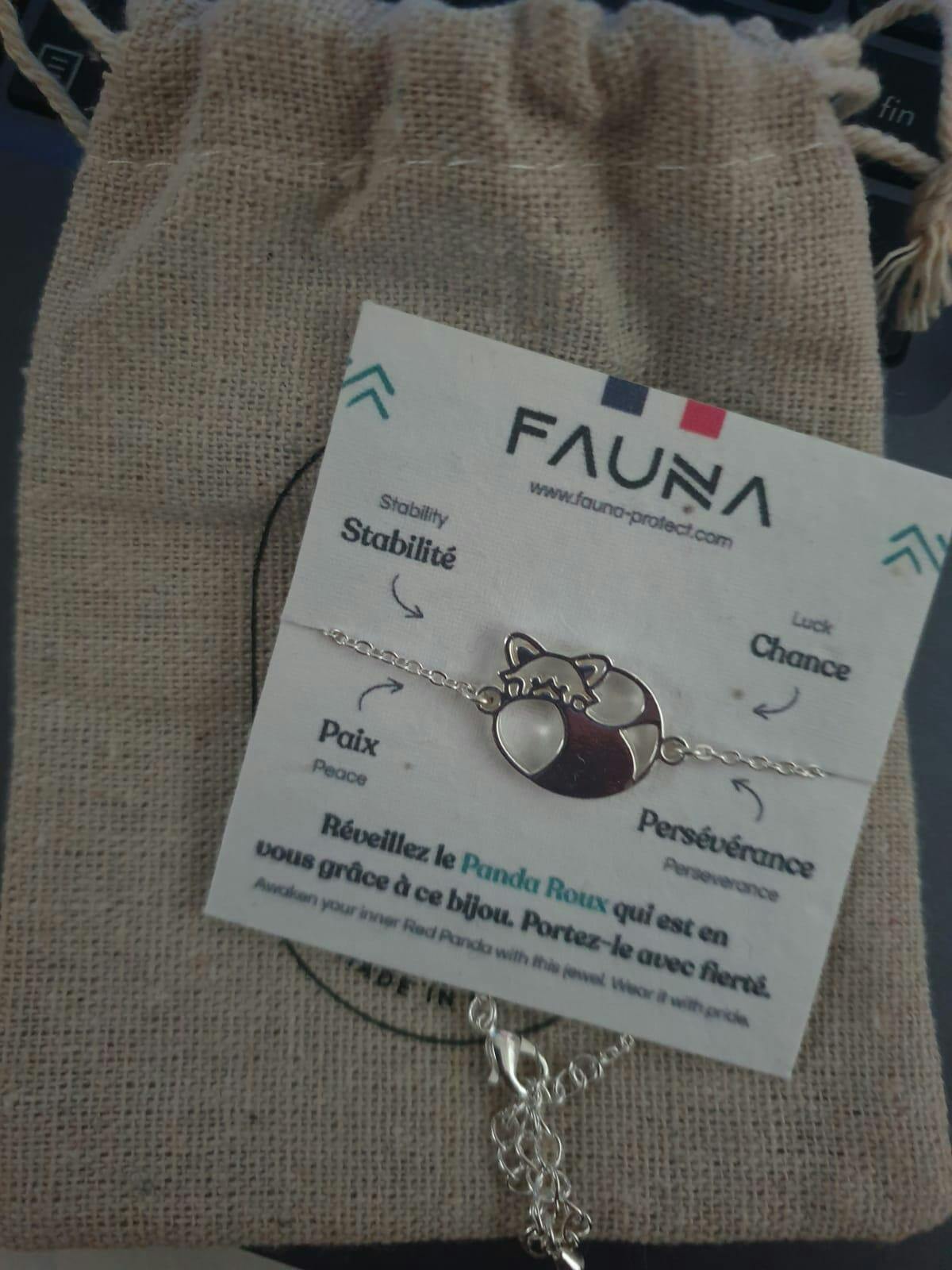 • Adorable petit bracelet reçu dans un joli sachet en toile. J'en ai offert un (la loutre) et je porte le mien (panda roux) depuis deux semaines, au top :) La chaîne est fine, mais a l'air solide.