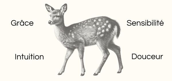 Symbole de sensibilité et d’élégance naturelle, il s’adresse à celles et ceux qui avancent avec délicatesse et confiance, à l’écoute de leur cœur et de leur intuition. Léger comme une caresse, il effleure la peau avec la même poésie qu’une biche traversant la forêt.