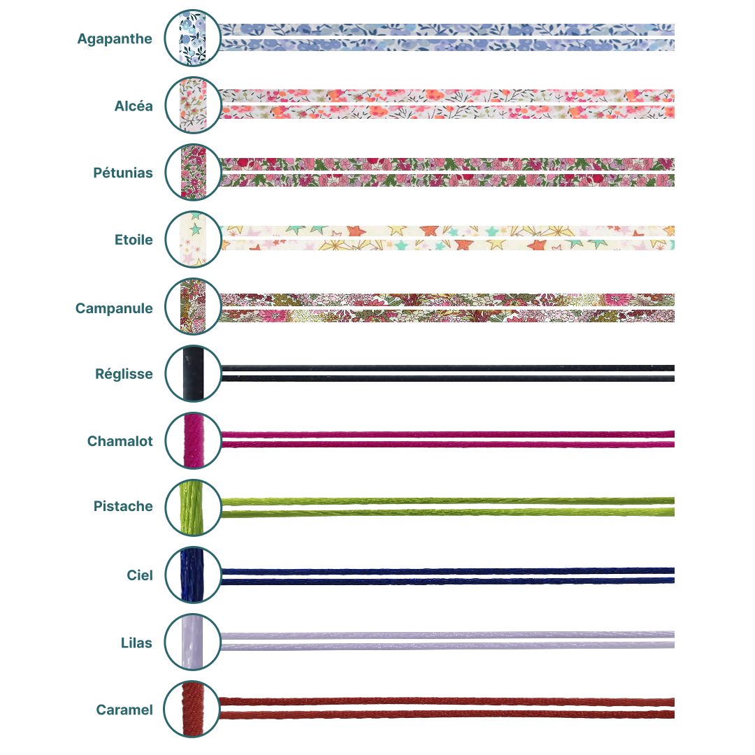• Cordon ajustable (de 11 à 19 cm), disponible en 11 coloris souples et résistants — parfait pour les jeux, l’école et les câlins